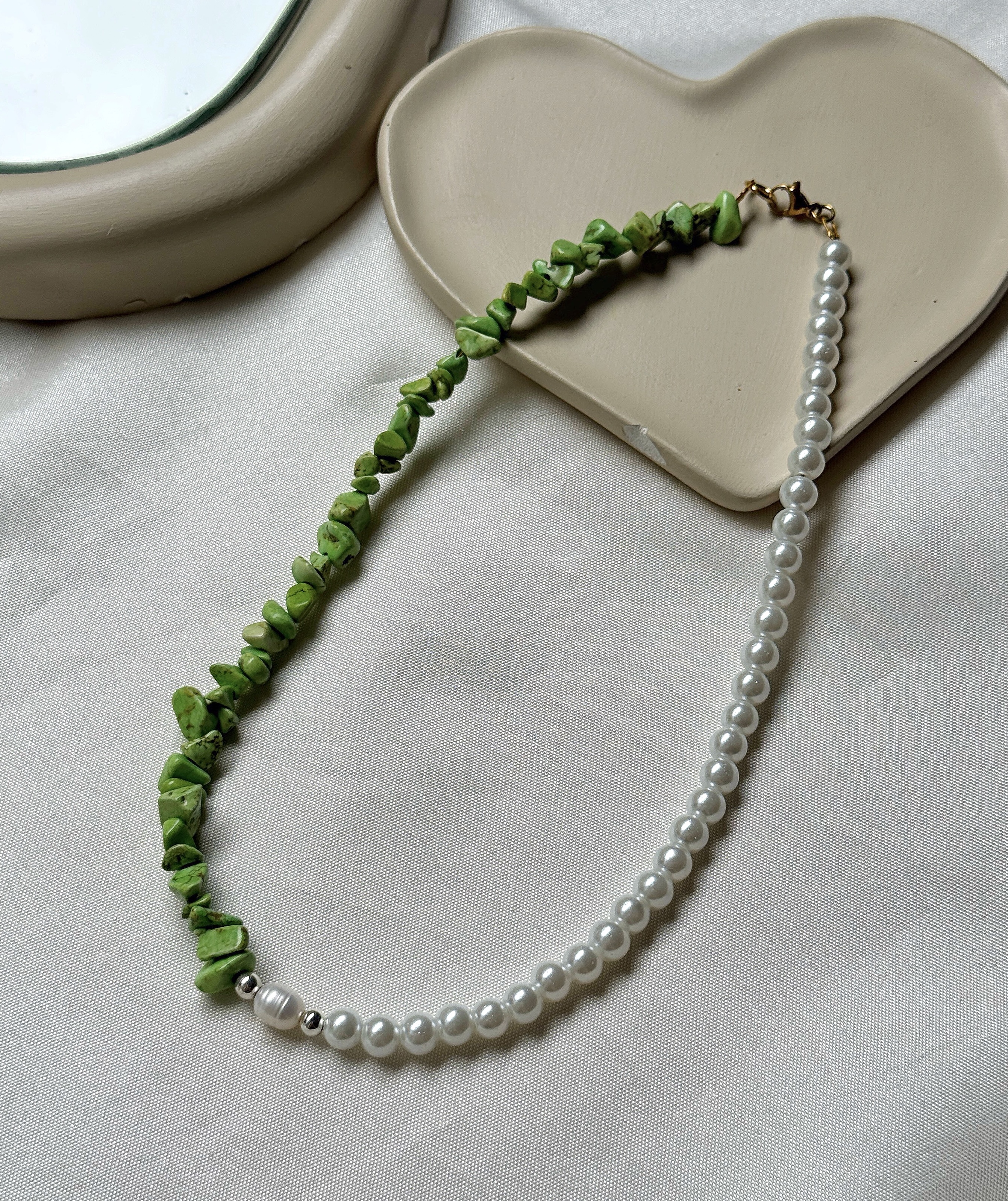 گردنبند دخترانه مدل سنگ چیپسی با تک مروارید پرورشی۲۲۰٬۰۰۰ تومان