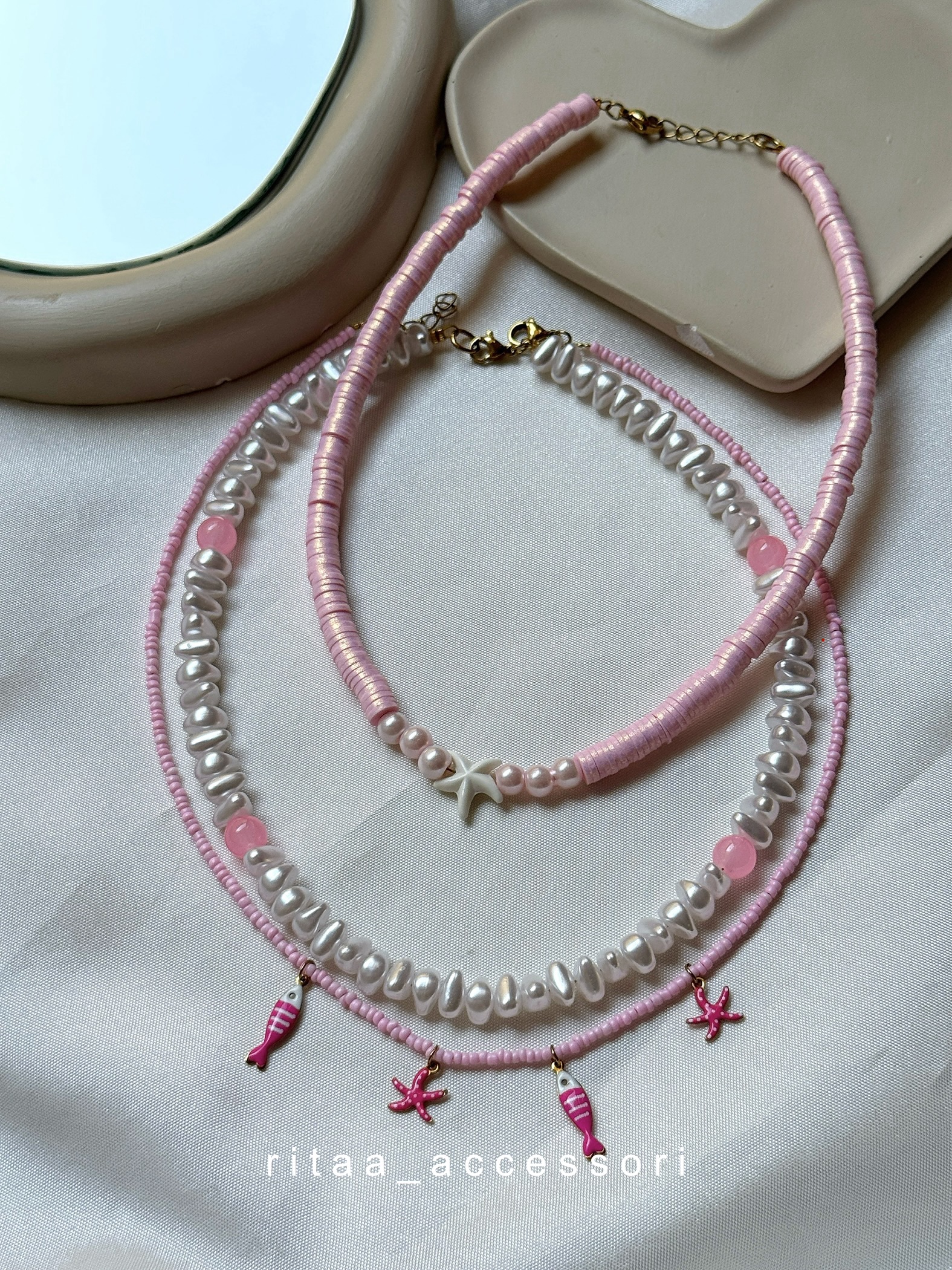 گردنبند صورتی پلاک ستاره دریایی و مروارید۲۶۵٬۰۰۰ تومان