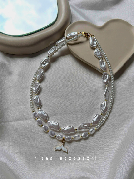 گردنبند دخترانه مدل دم وال با مروارید، انتخابی شیک و فانتزی برای استایل روزمره یا هدیه دادن به عزیزانتان. این گردنبند با طراحی ظریف و مرواریدهای شبه باروک، زیبایی و لطافت خاصی به استایل شما اضافه میکند. مناسب برای استفاده روزانه و هماهنگی با انواع لباسها، این گردنبند انرژی مثبت و حس خوشایندی را به شما هدیه میدهد.