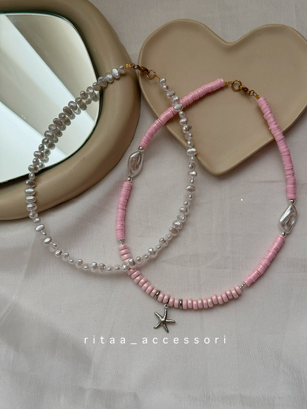 گردنبند صورتی پلاک ستاره دریایی و مروارید