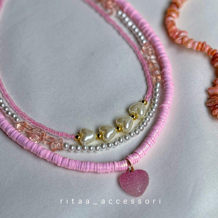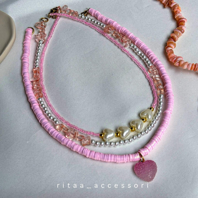 ست گردنبند فیمو صورتی الیزابت
