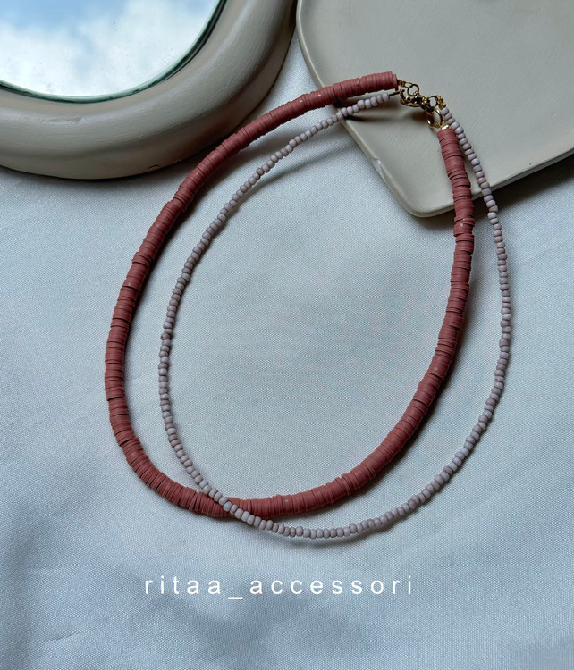 ست گردنبند دخترانه فیمو و منجوق قهوه ای