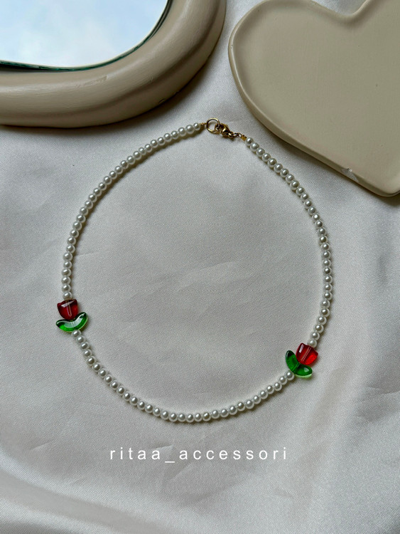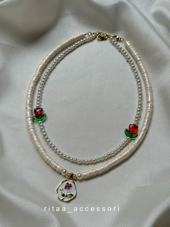 گردنبند دخترانه مدل گل سرخ