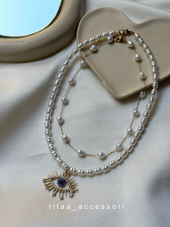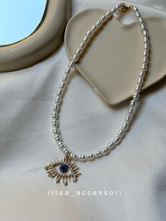 گردنبند مرواریدی دخترانه مدل چشم نظر