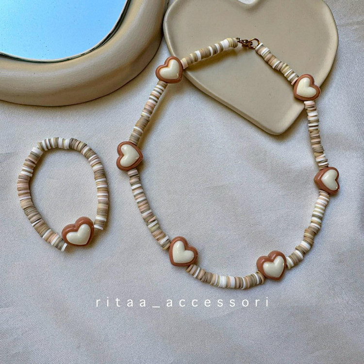 گردنبند و دستبند قلبی رو میتونی با لباسای خوشگل پاییزت که با رنگای گرم پاییزی درست شده ست کنی.