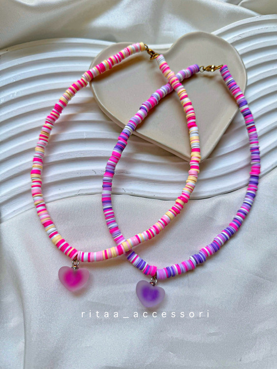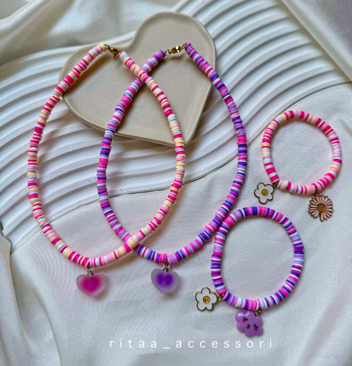 ست گردنبند و دستبند فیمو مدل پلاک قلبی