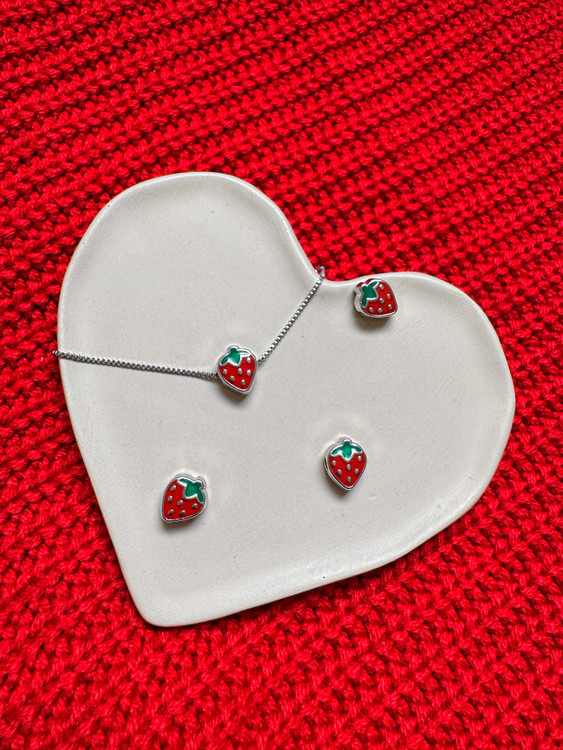 گردنبند دخترانه مدل پلاک توت فرنگی